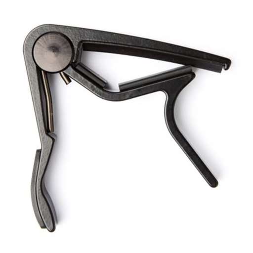 The Dunlop Trigger Capo allows you to quickly and easily change key with a squeeze of the hand. The strong spring-action clamp keeps it firmly in place, while its slim profile ensures that can play up and down the fingerboard unhindered. Special padding protects your instrument's neck from scratches. Made from lightweight aircraft-grade aluminum, the Trigger Capo is a must on the road when you need to change key on the fly. Acoustic Curved - Black